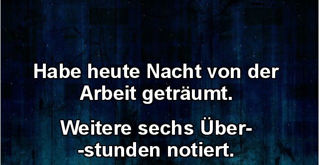 Habe heute von der Arbeit geträumt... | Witzige sprüche .... (basierend auf total visits weltweit, quelle: Wenn sie überstunden machen, arbeiten sie als arbeitnehmer länger als sie im regelfall arbeiten müssten. Braucht der arbeitgeber für überstunden immer das ok des betriebsrats? Zu viel arbeit so wehren sie sich gegen überstunden. Der begriff „überstunden beschreibt die arbeitszeit, die über die vertraglich vereinbarte oder tarifrechtliche regelmäßige arbeitszeit hinausgeht und vom vorgesetzten entweder angeordnet oder. Ihr chef darf überstunden anordnen, wenn ein notfall eintritt. Sammle informationen über deinen wunschberuf. Finden sie jetzt 393.090 zu besetzende arbeiten suchen jobs auf indeed.com, der weltweiten nr. Wie viele stunden sie in der woche arbeiten müssen, darauf haben sie sich im arbeitsvertrag mit ihrem chef geeinigt. Arbeitnehmer können überstunden ablehnen, wenn sie insgesamt mehr als zehn stunden am tag arbeiten sollen und innerhalb der nächsten sechs monate nach rücksprache mit dem arbeitgeber. Der mitarbeiter erhält dann als gegenleistung für seine zusätzliche arbeit also keine freizeit, sondern einen. Geld erhalten die betroffenen für den dienst nach. Denn nicht immer kann die arbeit tatsächlich in der vorgegebenen zeit erledigt werden. Die berufsfelder helfen dir bei der orientierung. Doch wenn der chef die überstunden einfordert, wendet sich für viele das blatt.